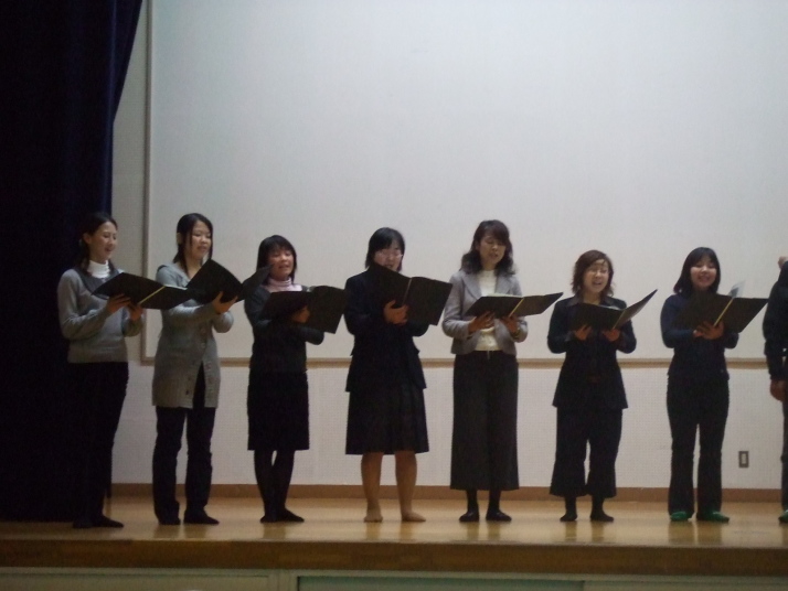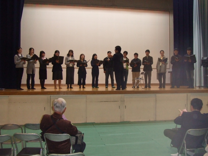 作品展示が行われていたため、少人数の合唱団にはちょっとキビシイ環境でした^^;